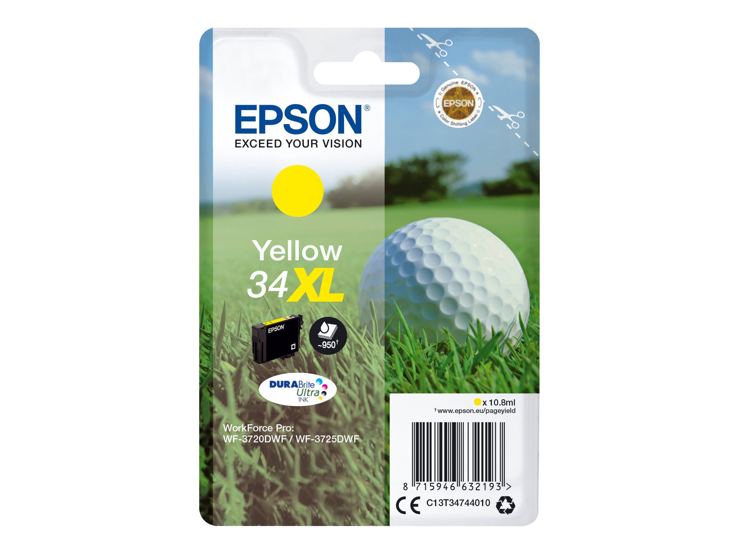 | Epson 34XL - 10.8 ml - XL - Gelb - Original - Blisterverpackung - Tintenpatrone - für WorkForce Pro WF-3720, WF-3720DWF, WF-3725DWF | |